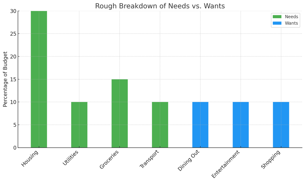This graph adds up to 95% on purpose. The remaining 5% is left as a buffer — a bit of playroom in your budget. Life is unpredictable, and building in a small margin helps absorb surprises without derailing your progress.